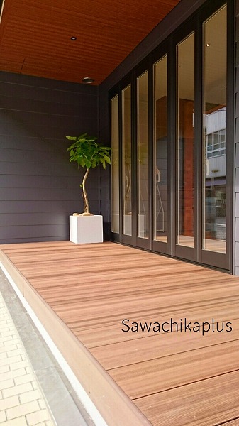人工木のデッキなので風雨による劣化を気にすることなくメンテナンスが簡単。