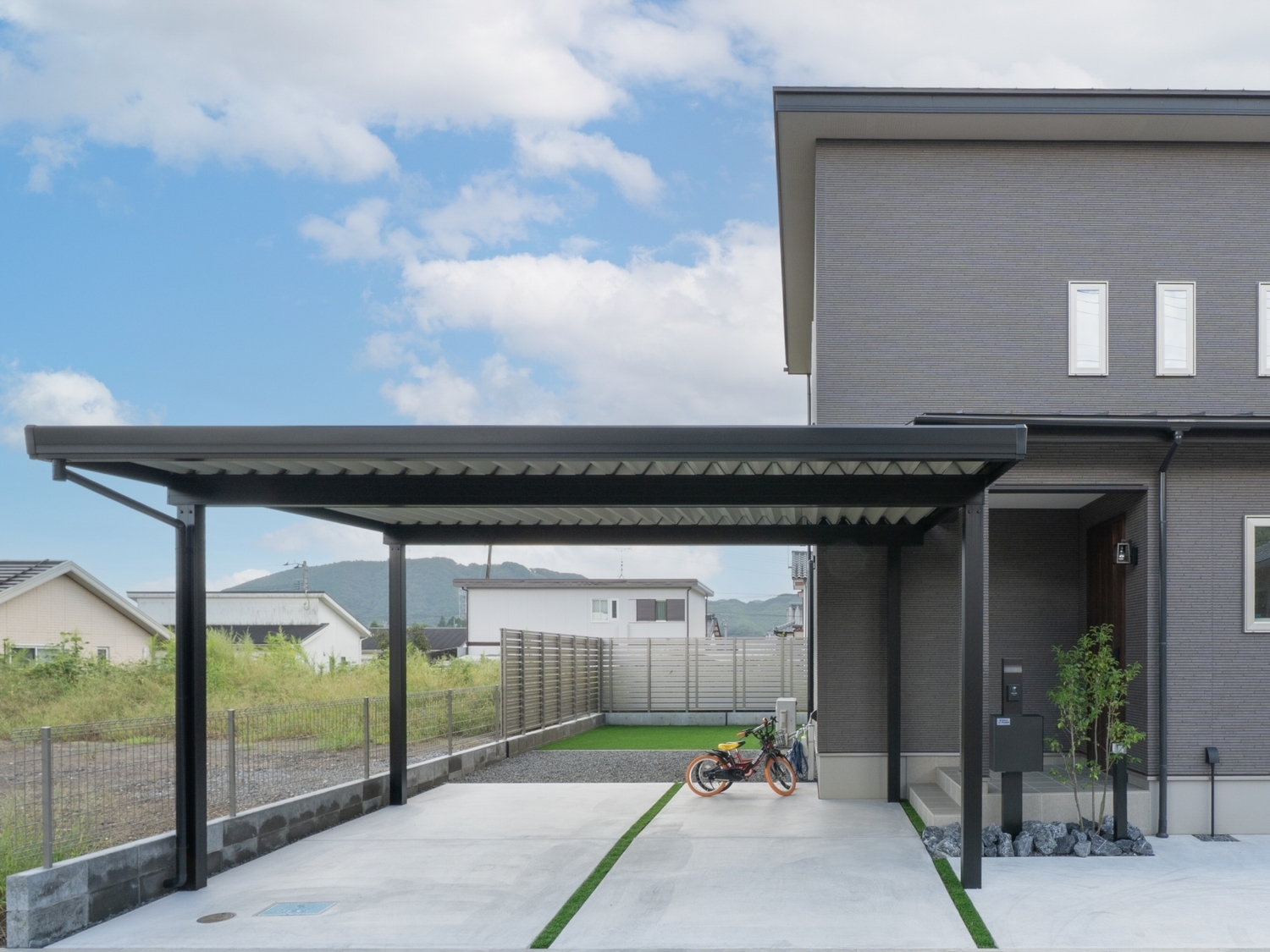 駐車スペースには、耐風圧性能に優れたLIXILのカーポートSWを設置しました。