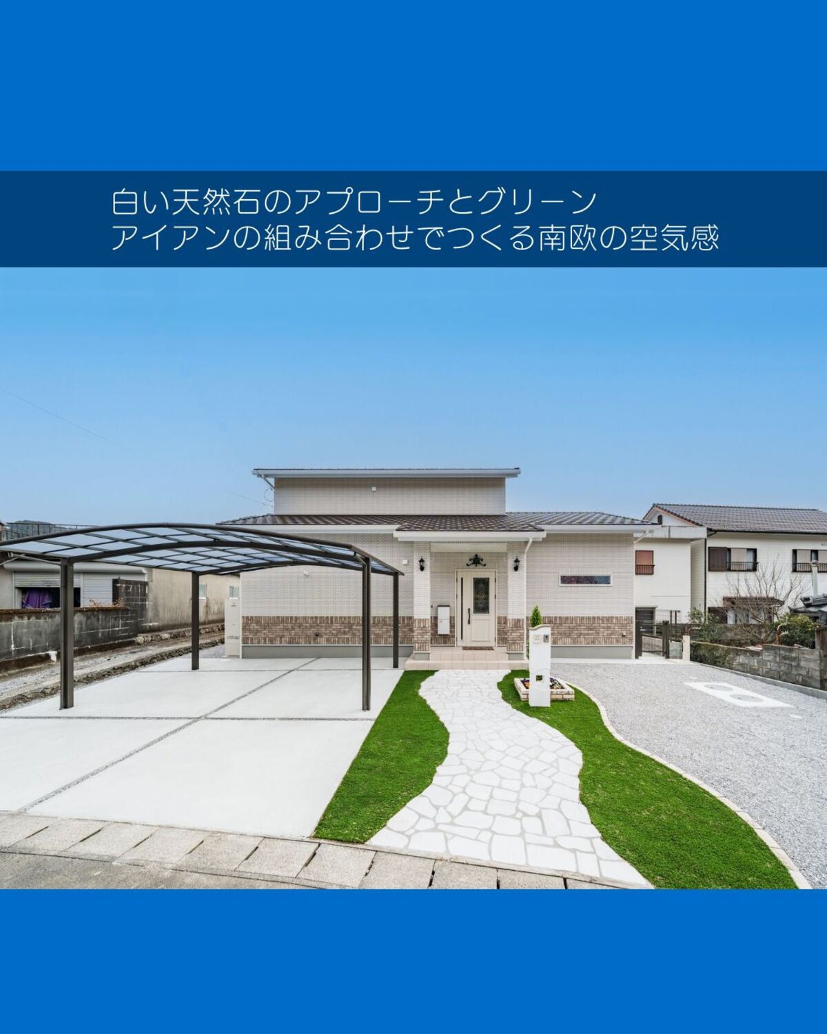 ■帰宅するたびにときめく、白の外構|南欧風エクステリア・天然石アプローチ×人工芝デザイン