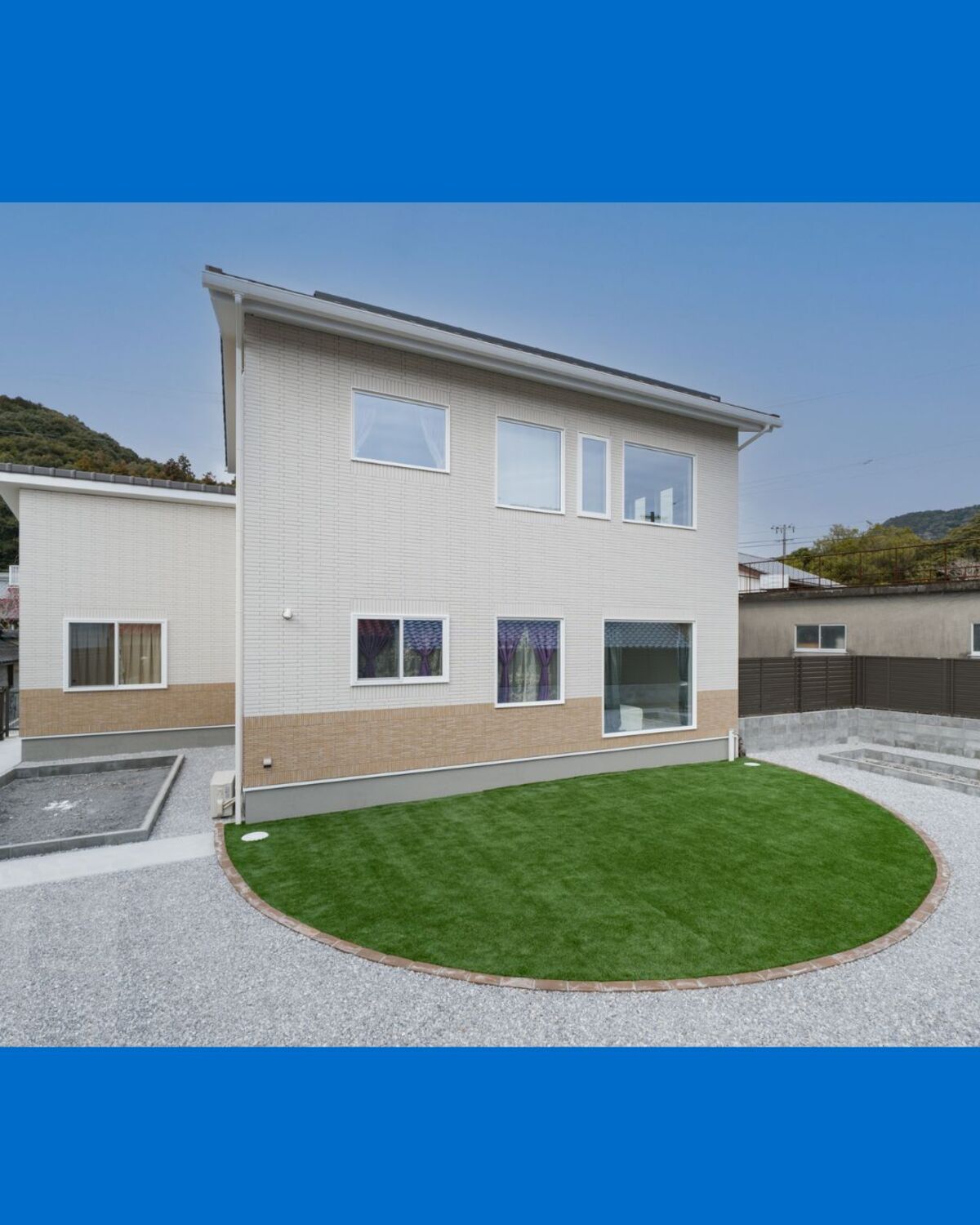 【土佐清水市】新築外構|白い天然石のアプローチ×人工芝 南欧風外構