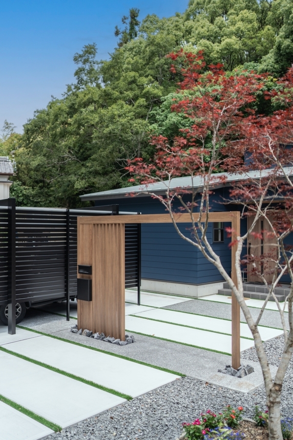 奥行きのあるアプローチデザインにより、外構全体に広がりと落ち着きを感じさせる印象に仕上げました。